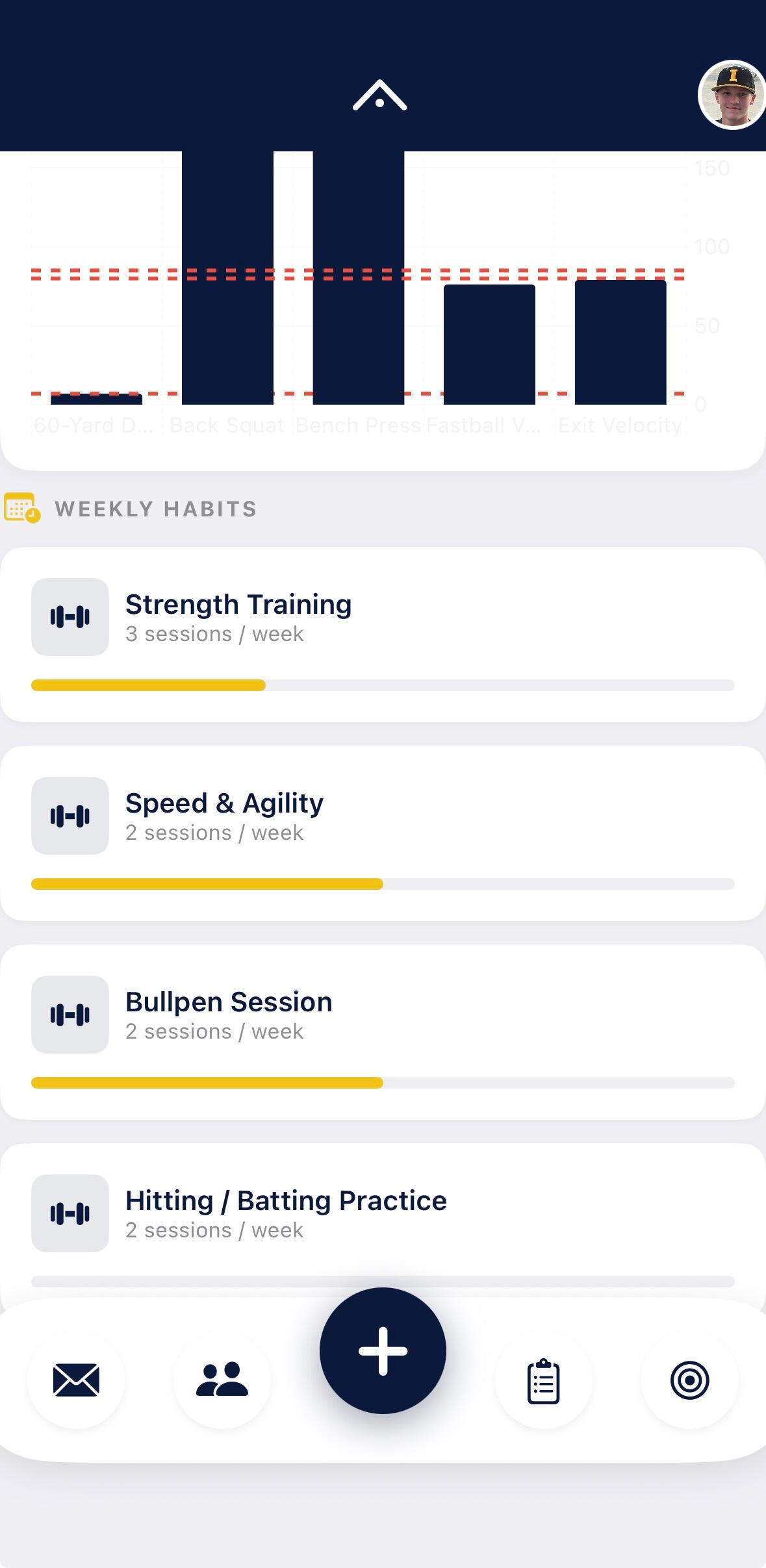 Log your batting practice, bullpens, highlights, and gym sessions in seconds.