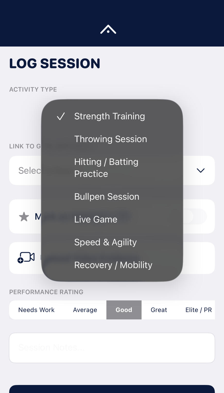 Log your batting practice, bullpens, highlights, and gym sessions in seconds.